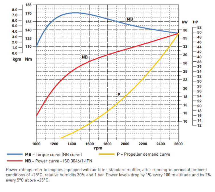 Potenza Massima HP 50 @ 2600 RPM