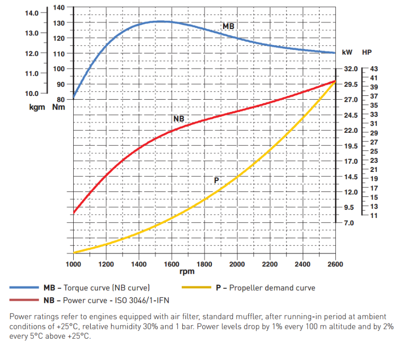 Potenza Massima HP 40.8 @ 2600 RPM