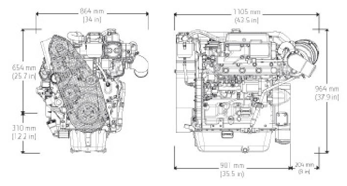 | Cilindrata - L (cu in) | 4,48 (273) | Altezza, centro dell'albero motore alla parte superiore - mm (in) | 653 (25.7) | |||