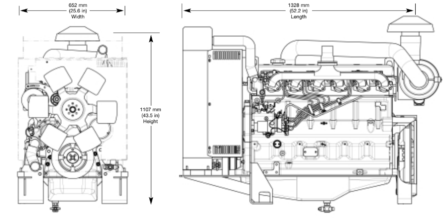 Le dimensioni compatte (1328 mm di lunghezza, 652 mm di larghezza, 1107 mm di altezza) e il peso di 643 kg facilitano l'integrazione in varie macchine. Scegliere il John Deere 6068DF150 significa optare per un motore affidabile e potente, capace di garantire prestazioni sostenibili in ogni situazione.