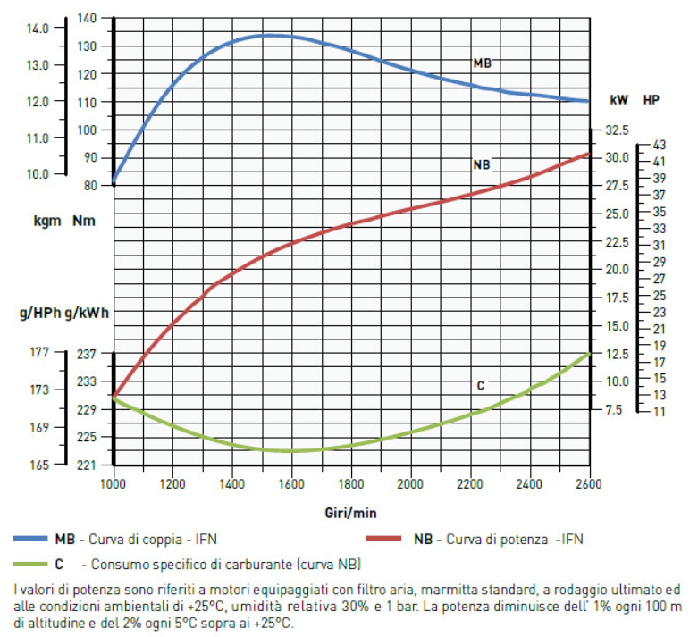 Potenza massima (IFN-ISO 3046 e ISO 14396)(kW@giri/min) 31@2600
